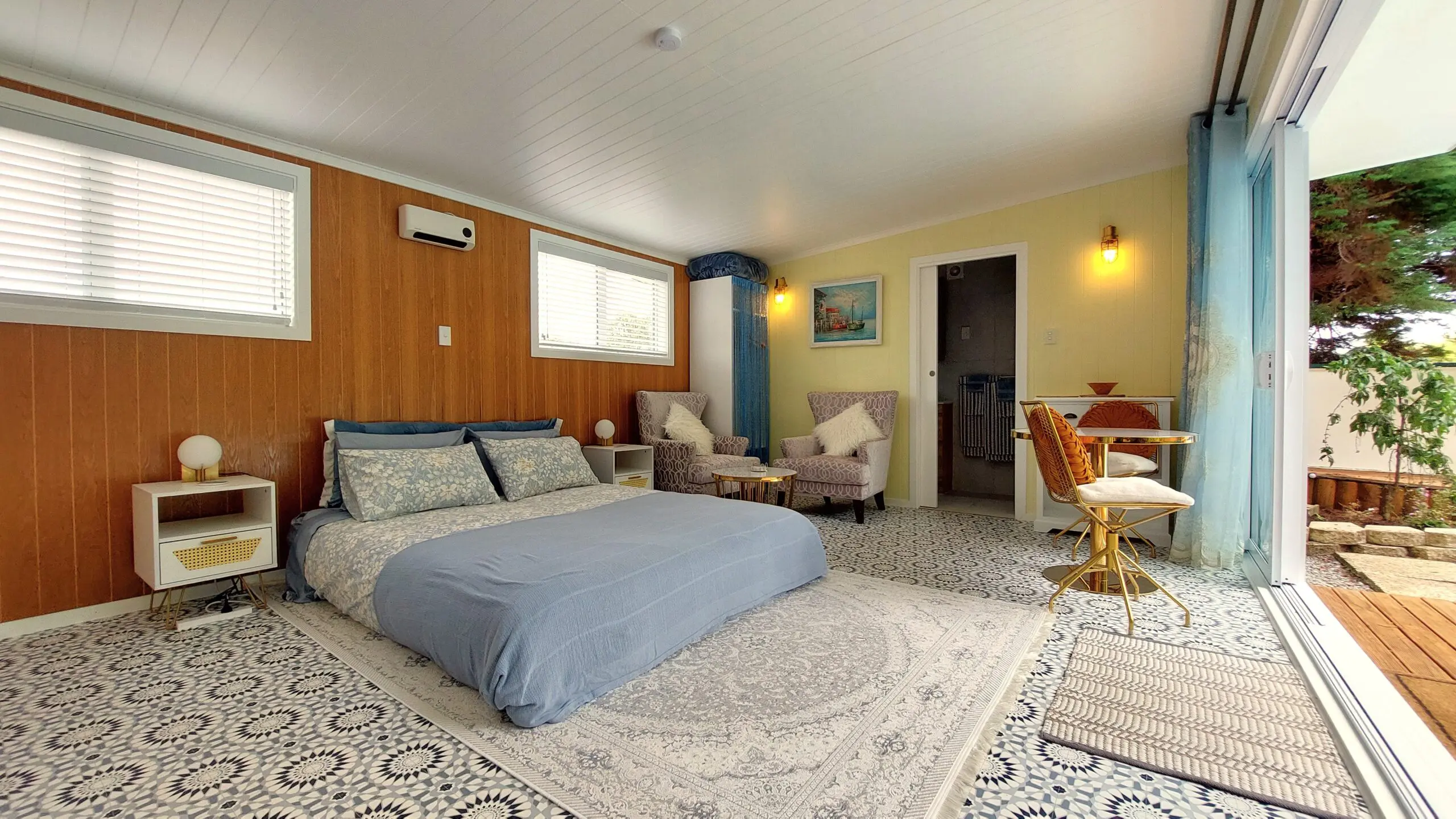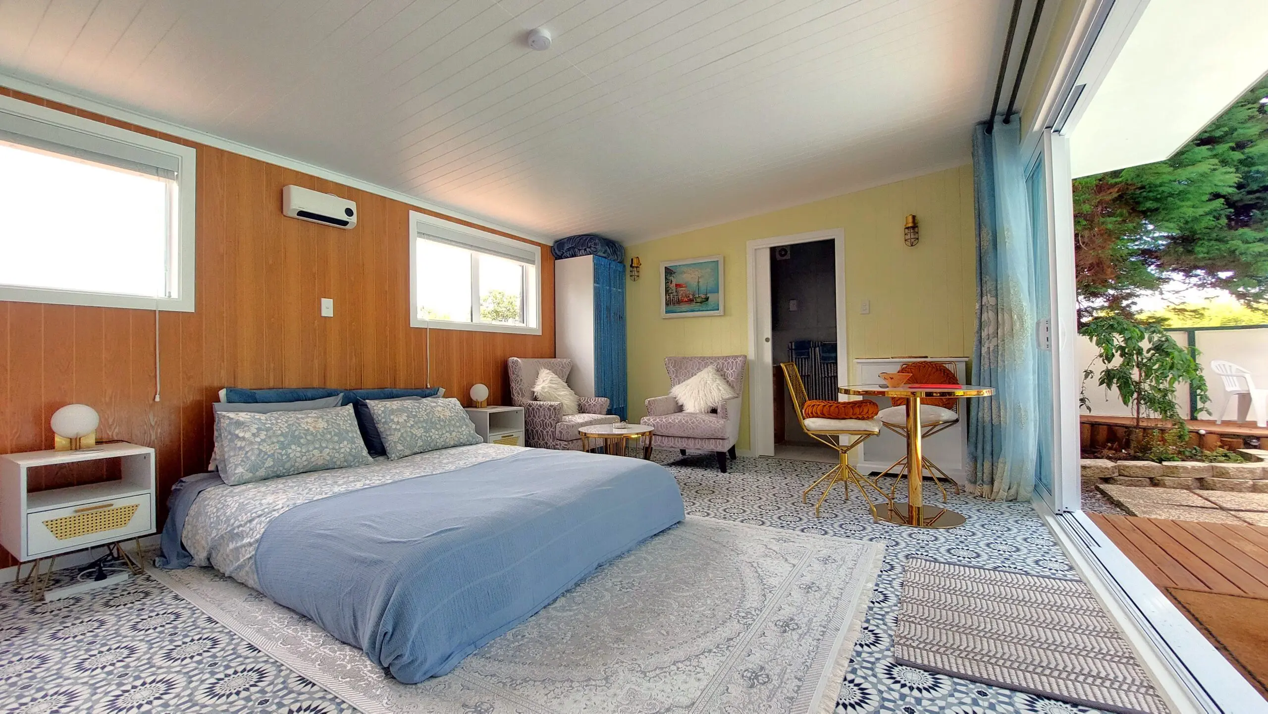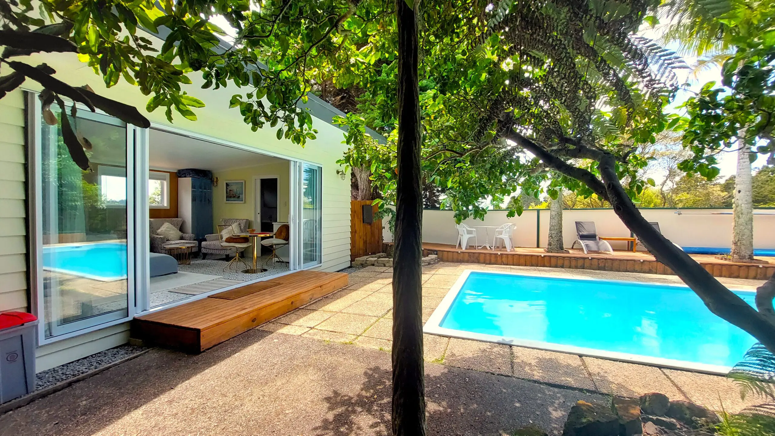 Wake up to the refreshing serenity of the soothing sounds of nature, bird song and the morning sun feeling calm, relaxed and rejuvenated. Our stylish retro fitted pool house is tucked away among the fruit and nut trees giving you a peaceful and private place to stay, relax and unwind.