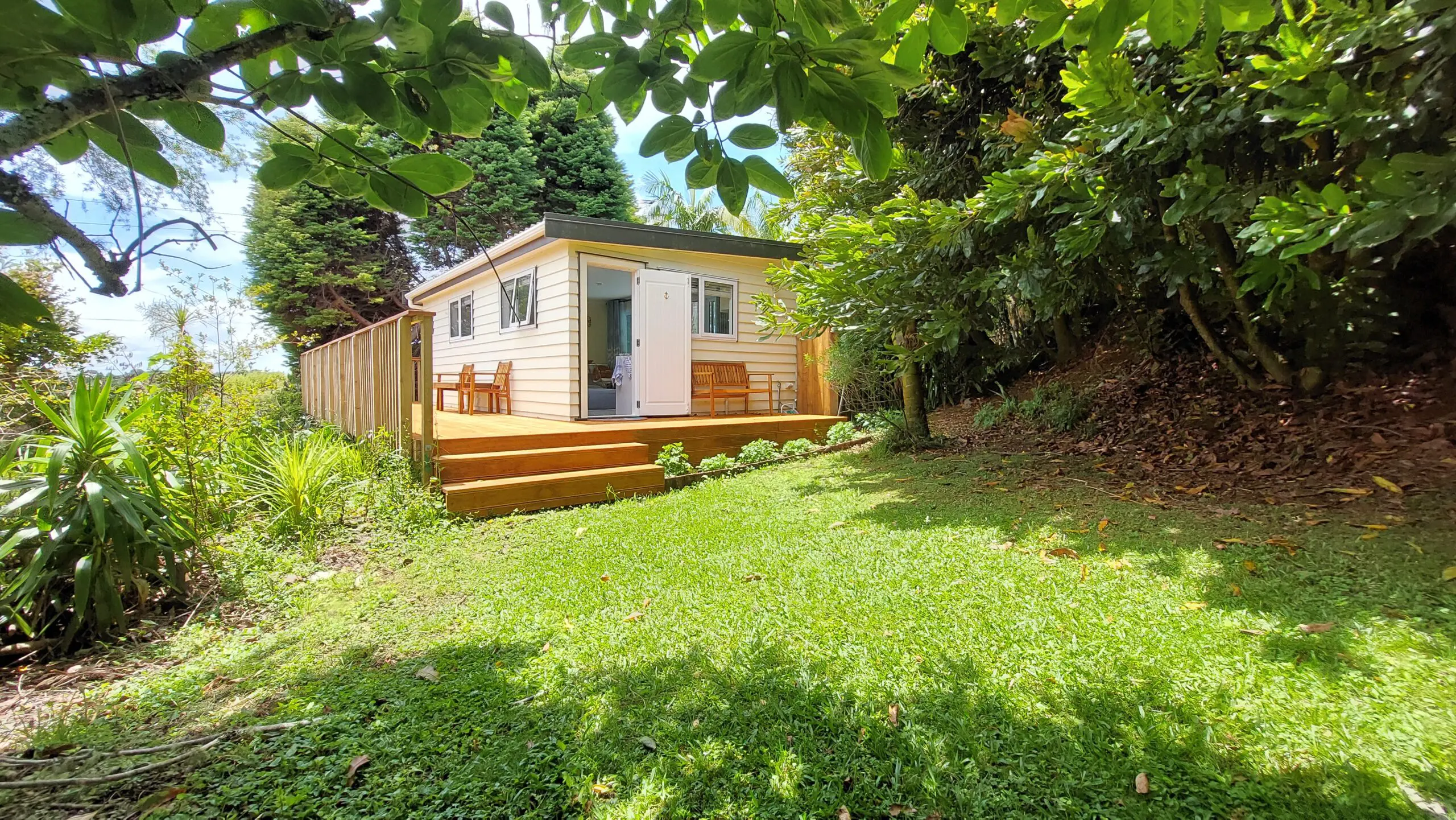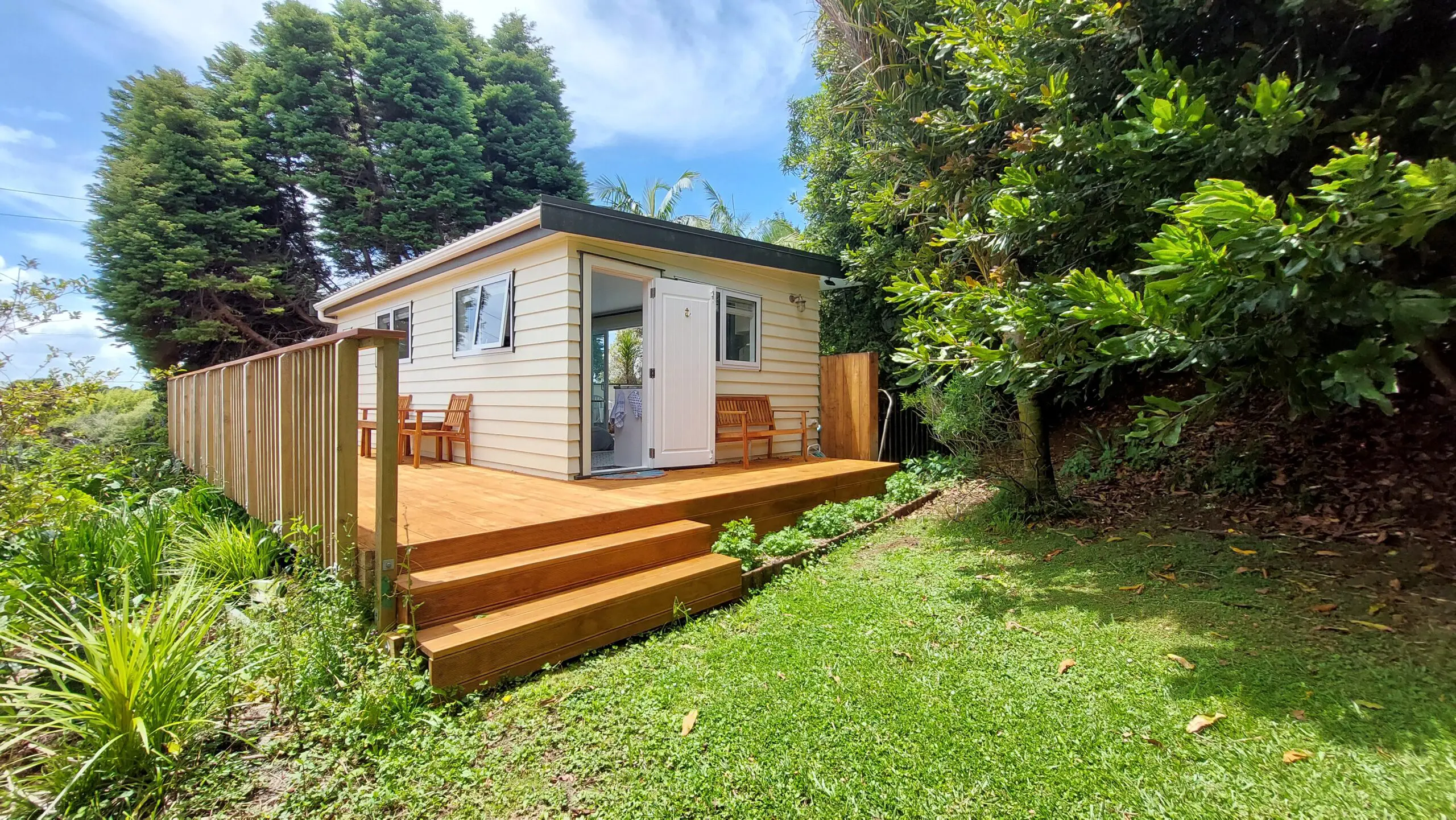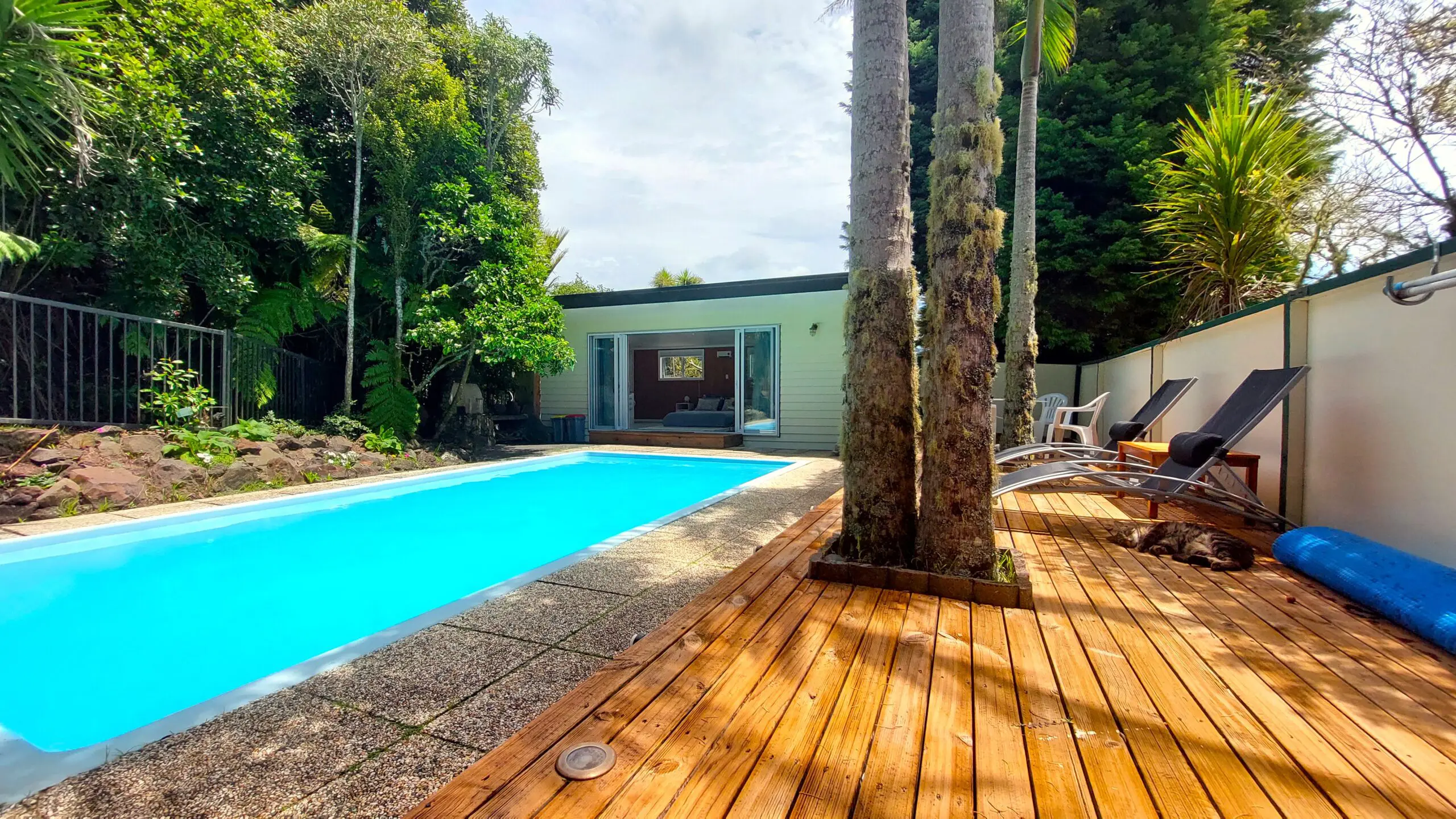 Wake up to the refreshing serenity of the soothing sounds of nature, bird song and the morning sun feeling calm, relaxed and rejuvenated. Our stylish retro fitted pool house is tucked away among the fruit and nut trees giving you a peaceful and private place to stay, relax and unwind.